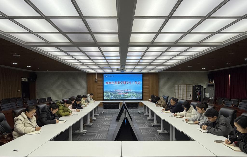 党总支书记高昌慧作总结讲话。她指出,安全稳定是学生工作的前提和底线,全体学工人员要以安全稳定为根基,推动学院学生工作取得新成效、迈上新台阶。结合新学期工作重点,她从五个方面提出明确要求:一是抓实队伍建设,强化学工队伍和学生干部队伍的工作作风,提升工作能力,为新学期工作开展筑牢队伍基础;二是深化学风建设,优化“教育引导-检查监督-反馈处理”机制,强化课堂纪律管理教育,完善帮扶机制,鼓励学生投身学科竞赛与学术科研,营造优良学风;三是丰富校园文化活动,结合学院专业特色,学院团总支和各班围绕专业实践、文化浸润和体育活动分层分类开展各类活动,丰富学生课余生活,提升学生综合素养;四是做好毕业生就业工作,抢抓春季就业黄金期,精准开展就业指导和帮扶,优化就业服务,全力助力毕业生实现更高质量就业;五是做好党团组织创建工作,提升思想政治教育工作水平,强化学生党团组织的战斗堡垒作用,加强教育管理,引领学生成长成才。