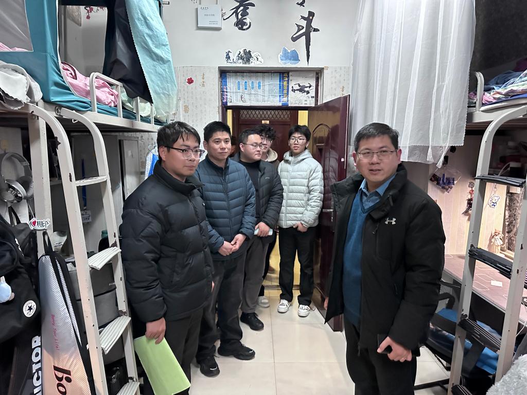 在走访中,郝昊与同学们亲切交流,耐心叮嘱大家要时刻紧绷安全这根弦。他提醒同学们,务必增强安全防范意识,严格遵守学校宿舍管理规定,为大家的学习生活共同营造一个安全温馨的氛围。
