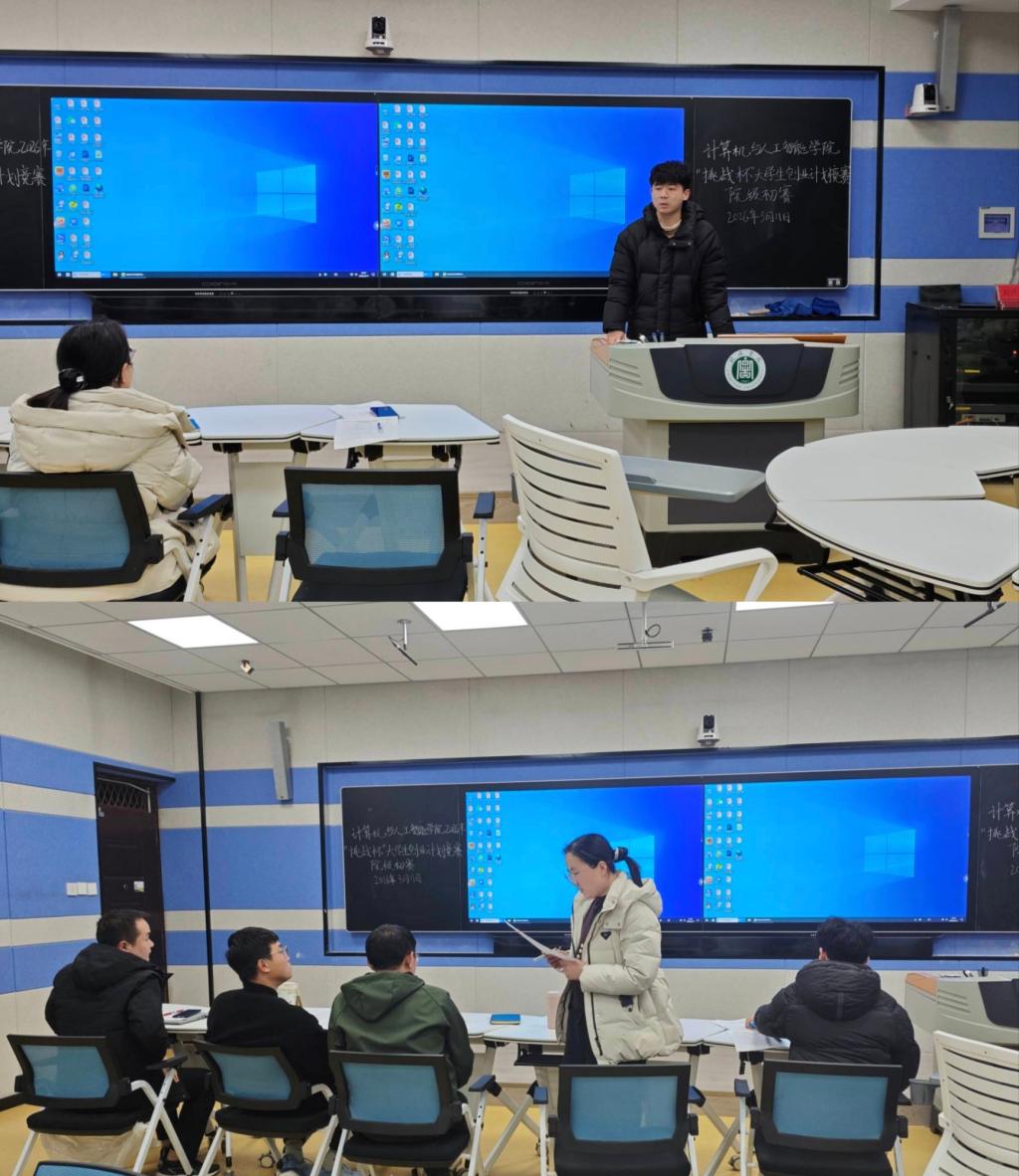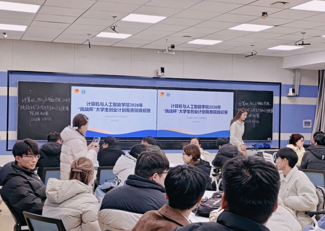 为深入贯彻创新驱动发展战略,激发广大学子的创新创业热情,3月11日晚,计算机与人工智能学院在人文楼南楼智慧教室成功举办2026年“挑战杯”中国大学生创业计划竞赛院级初赛。比赛邀请有着丰富竞赛指导经验的各教研室专业教师代表出席活动并担任评委,来自全院的36支参赛团队进行了精彩纷呈的项目展示。比赛由学院团总支书记徐瑞爽主持。