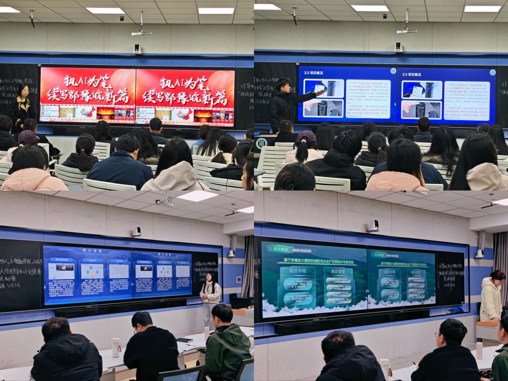 在项目汇报环节,学生充分展现了扎实的专业功底与敏锐的时代洞察力。例如,由2023级计算机科学与技术专业学生团队带来的“AI城市舆情监测感知系统”项目,针对城市治理中舆情响应滞后、决策缺乏数据支撑等痛点,融合大数据分析与大模型推演技术,实现了城市舆情的实时感知、态势研判与辅助决策,展现了人工智能赋能社会治理现代化的广阔前景。2023级物联网工程专业团队带来的“肉牛养殖智慧化服务系统”项目,则聚焦乡村振兴战略,利用大模型技术为肉牛养殖提供全流程数字化管理、疫病预警及市场分析服务,以科技力量助推传统畜牧业转型升级。参赛项目不仅技术创新性强,而且落地路径清晰,充分体现了学院“以技术解决实际问题”的育人导向。