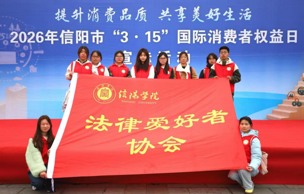 3月15日,由信阳市市场监督管理局、信阳市消费者协会联合主办的“2026年信阳市‘3·15’国际消费者权益日宣传活动”如期开展。信阳学院法律爱好者协会成员作为信阳市志愿者代表受邀参与,以专业法律知识助力消费维权普法与诚信宣传工作。