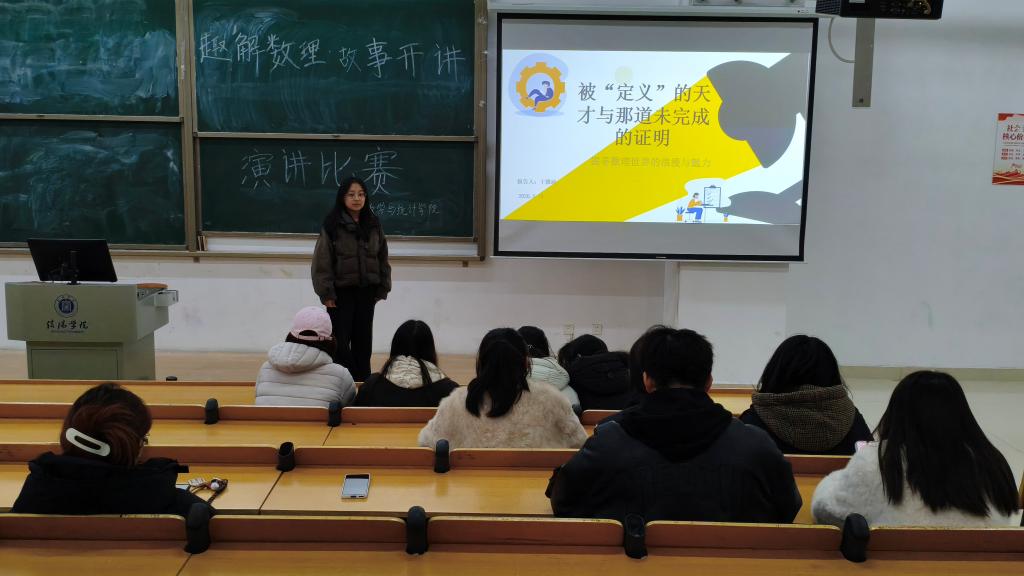 为弘扬数理文化,丰富校园文化生活,让抽象的数理知识变得生动鲜活,3月19日,数学与统计学院在综合楼202教室举办“趣解数理·故事开讲”演讲比赛。