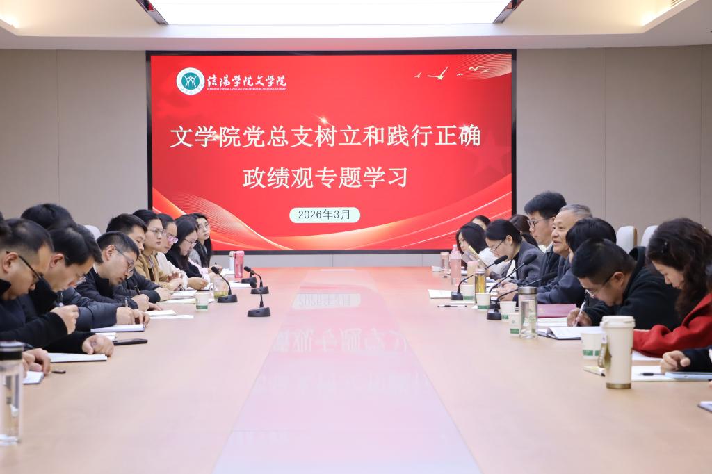 2026年3月23日,文学院党总支在教一楼406会议室开展树立和践行正确政绩观专题学习活动。副校长王强,文学院院长张凌江,文学院党总支书记李赟以及文学院第一、第二和第三教工党支部成员参与会议。