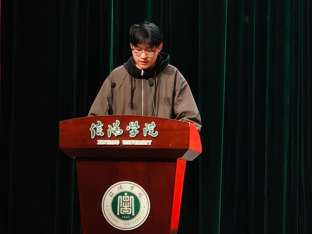 学生代表25级地理本01班张梦飞上台发言,表达了对新学院成立的喜悦之情以及在新平台上勤学奋进、不负韶华的决心。
