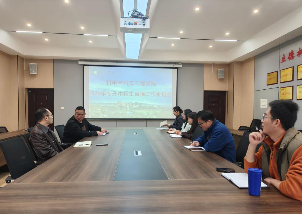 为切实做好2026年专升本招生宣传工作,日前,机电与汽车工程学院在理工楼201会议室召开专升本招生直播工作专题推进会。机电与汽车工程学院党总支书记花端阳、教学干事王思满以及参与本次招生直播的6位老师参会。会议统筹部署了直播相关工作,为后续线上宣讲顺利开展奠定基础。