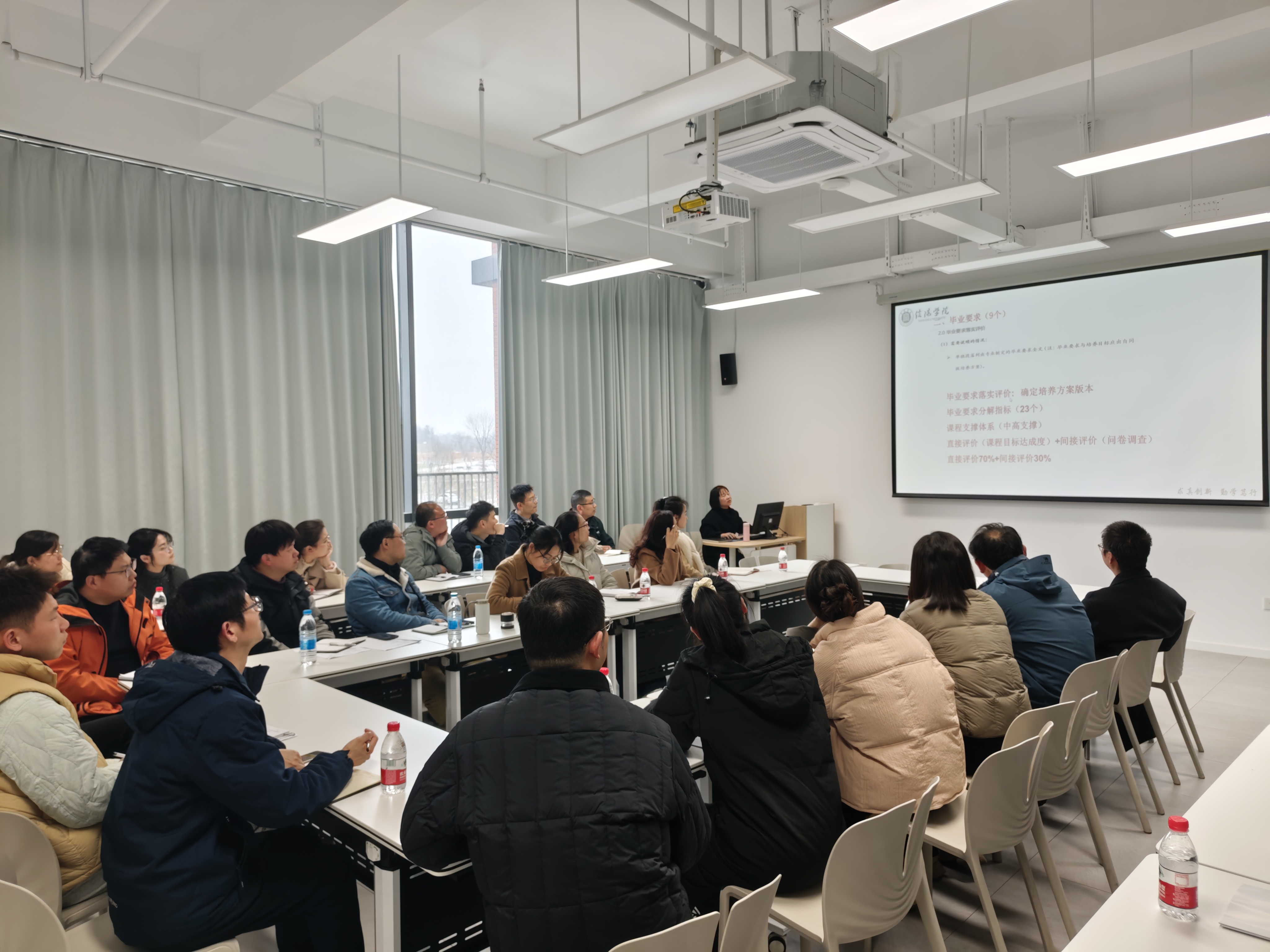 主讲环节,梁法丽老师结合师范专业认证核心要求,聚焦认证体系内39个二级指标点,进行全面细致的拆解与解读。她逐一梳理各指标点的核心内涵、考核重点、材料支撑要求及筹备注意事项,针对性分析指标落实过程中的重难点问题,明确后续工作方向与任务分工,为参会人员清晰呈现了认证工作的完整脉络与实操路径,让各项筹备工作有章可循、有据可依。