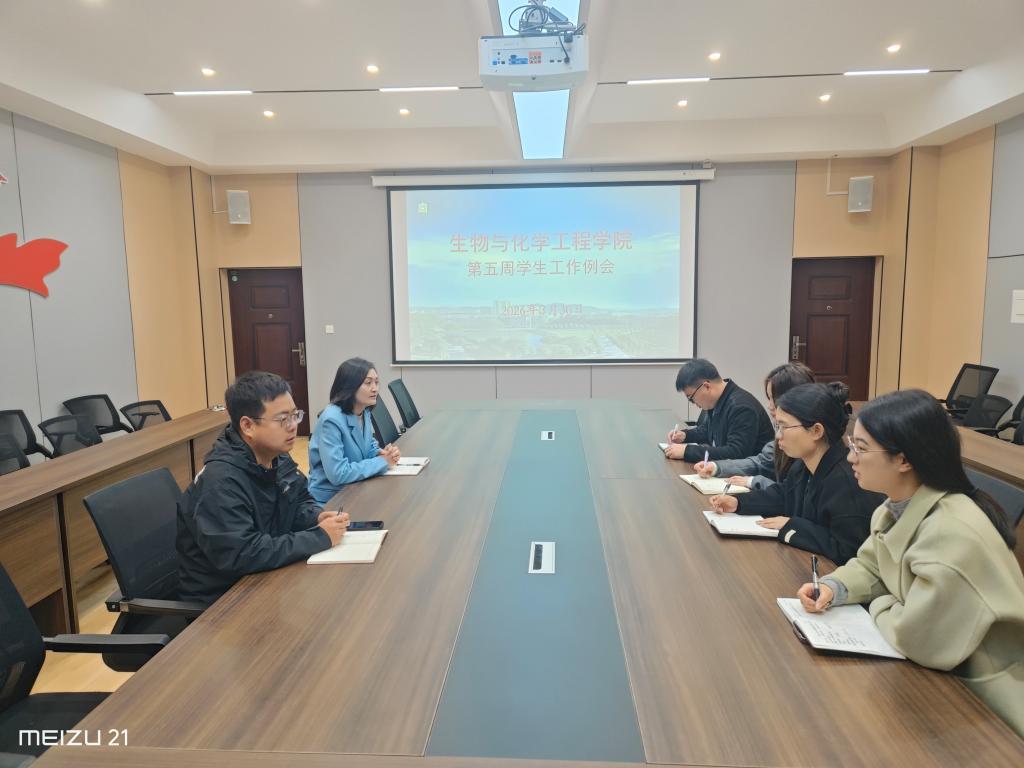 为扎实推进学生工作,进一步明确重点任务、压实工作责任,3月30日,生物与化学工程学院召开2026年春季学期第五周学生工作会议。学院党总支书记赵佳、学工干事邓先强及全体辅导员参加了本次会议。