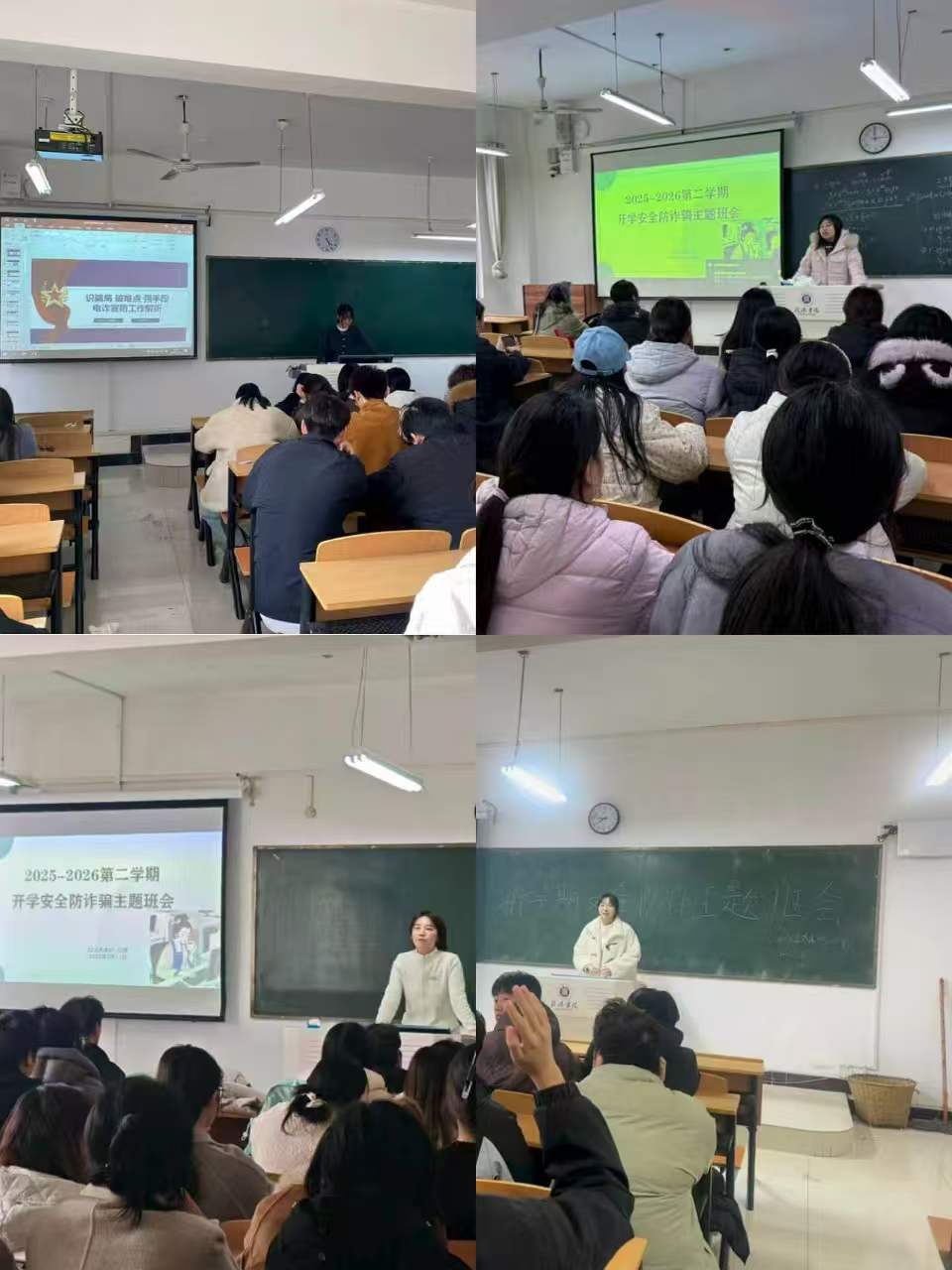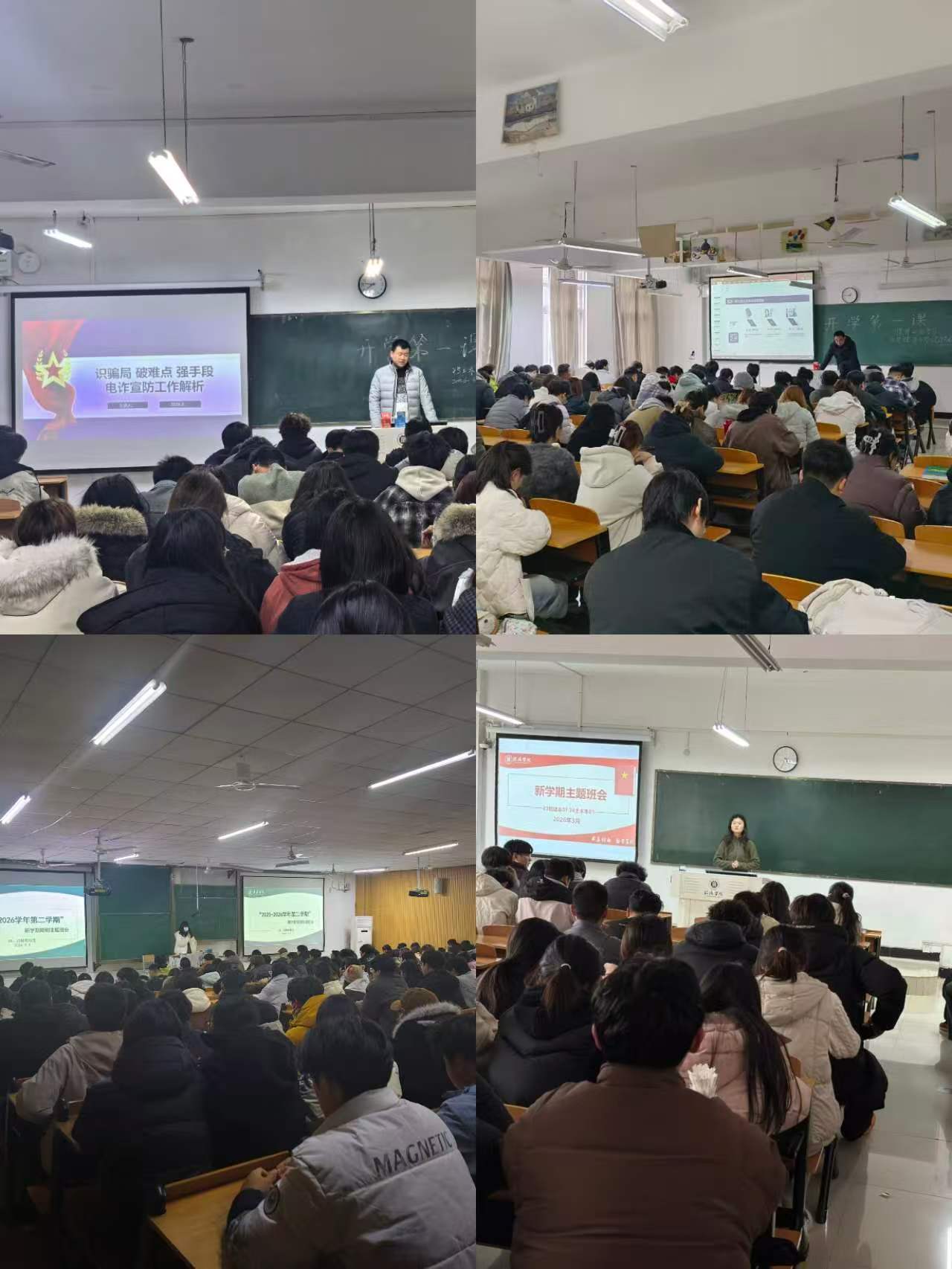 在“开学第一课”中,各位辅导员紧扣时代脉搏,将政治引领摆在首位,结合专业特色,鼓励学生将个人理想融入国家发展大局。针对不同年级学生的特点,围绕消防安全、防范电信网络诈骗及交通安全等主题,开展了全方位的安全教育活动。通过播放警示教育片、剖析真实案例,生动形象地向学生普及安全知识,有效提升了学生的风险防范意识和自我保护能力。特别是针对当前的网络诈骗手段,辅导员们反复提醒学生“不轻信、不转账、不透露”,切实筑牢校园安全“防火墙”。此外,各位辅导员特别关注学生心理健康,通过心理调适讲座和团体辅导,引导学生掌握情绪管理方法,学会有效沟通,以积极阳光的心态面对学业与生活中的压力。