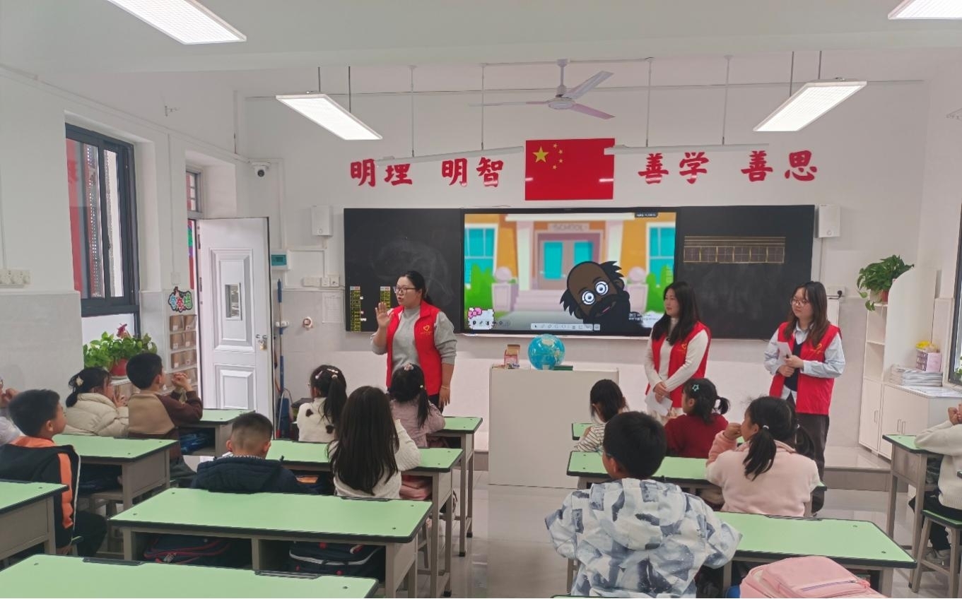 活动伊始,张孟杰老师以自我介绍开场,结合其此前在国外教授中文的亲身经历,引发小学生对英语的学习兴趣,并围绕“英语能够为我们做些什么”展开主题探讨。介绍环节后,张孟杰老师与志愿队学生共同呈现了《Try Everything》和《Let It Go》的英文歌曲演唱,赢得现场热烈反响。