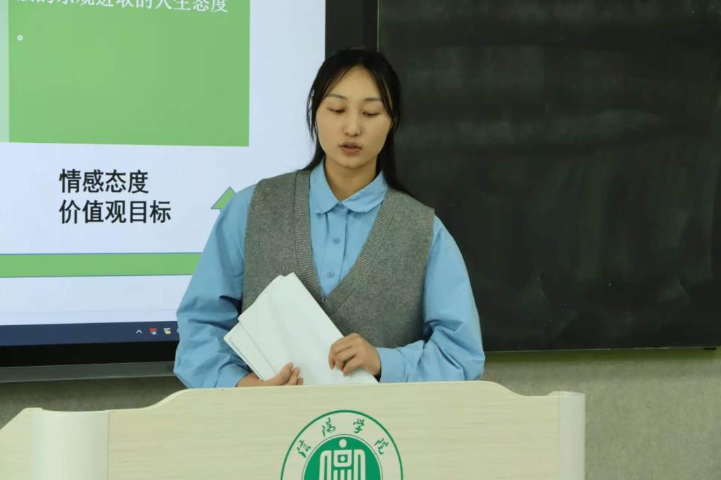 在《中国古代文学(二)》课程的教学展示中,林科留老师选择以三国文学作为本次比赛的主讲主题。课堂上,她重点剖析了曹丕性格中重情重义的特质,同时也提出了引人深思的观点:重情之人,往往也带着通透的薄情。林老师带着学生们一同回溯三国时期波澜壮阔的文学发展史,让大家切身感受到三国文学独有的雄浑气魄与历史厚重;“采菊东篱下,悠然见南山”。胡发萍老师同样带来《中国古代文学(二)》的课程展示——《陶渊明经历的流寓特征》。她以“流寓”为核心切入点,逐层解读陶渊明归隐前后曲折的人生轨迹。教学中,胡老师采用线上线下融合的创新模式,引导学生主动探究知识;同时通过分组讨论,和学生一同梳理陶渊明仕隐选择的内在规律,还适时抛出问题启发学生独立思考,课堂互动氛围十分活跃;最后登场的马笑雪老师,结合《中学语文教学设计》第一章内容,带来了一堂主题为“左手AI提效,右手人文坚守”的创新示范课。她先带领学生回顾语文课程性质的表述变迁:从“工具说”到“人文说”,再到新课标明确的“语文课程是一门学习语言文字运用的综合性、实践性课程”,帮助学生理清语文教育的内在逻辑。马老师将人工智能融入一线教学,在课堂中引入“AI助教”,借助多模态教学资源拓展解读视角,同时主动反思教学 实践,充分展现了青年教师勤于反思、善于借力的优秀素养。