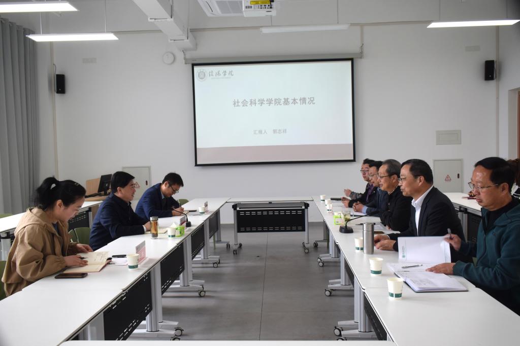 4月2日上午,校党委书记江玉安,校纪委书记、校长助理杨高伟,党委办公室主任娄琪等一行深入社会科学学院调研指导,社会科学学院院长郭志祥、党总支书记胡志国、学院班子成员和特聘教授、教师代表参与座谈。