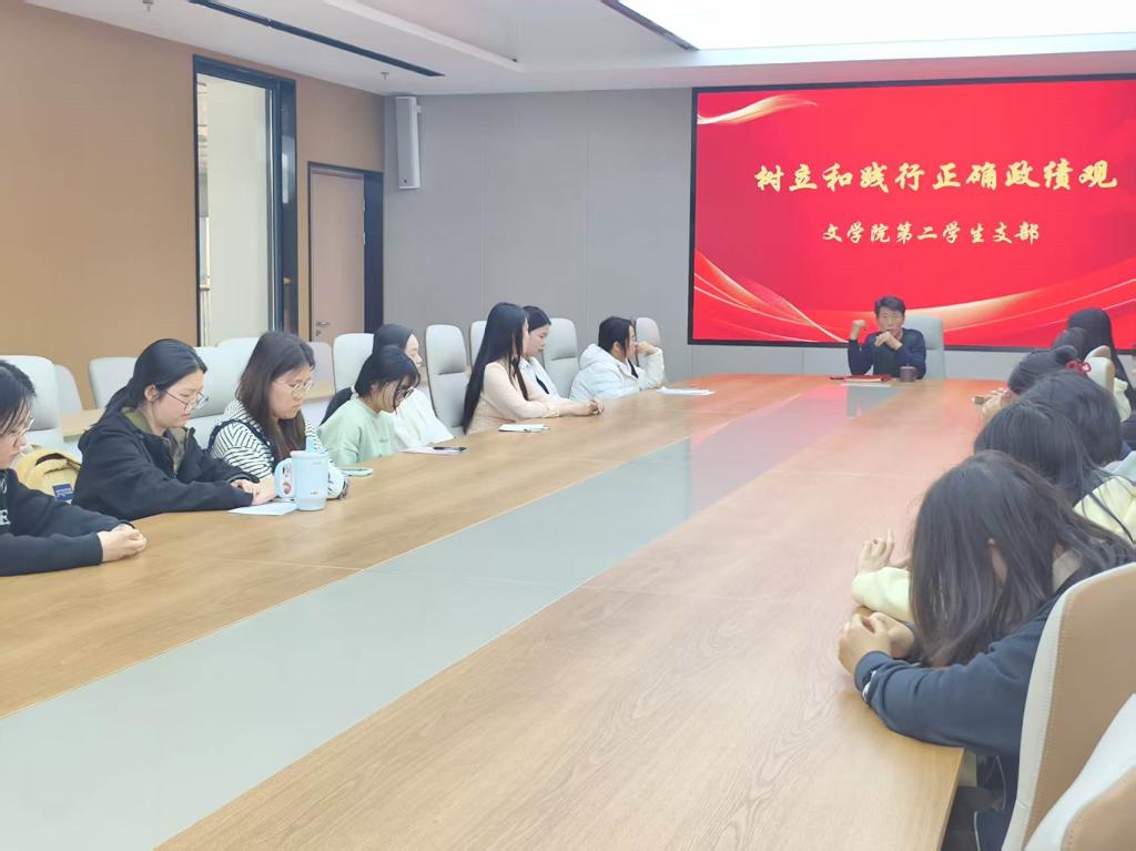 此次专题学习会进一步深化了党支部党员对树立和践行正确政绩观的理解与把握,凝聚了思想共识、强化了责任担当。下一步,文学院第二学生党支部将持续深化理论学习,引导党员以实干担当践行初心使命,为学院党建与育人工作高质量发展贡献青春力量。