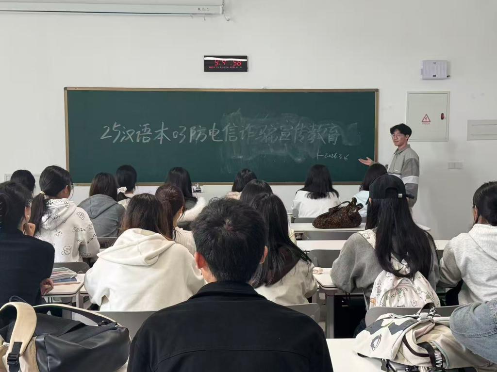 为切实提升学生反诈防骗能力,筑牢校园安全防线,4月上旬文学院以班级为单位,集中开展防范电信诈骗主题班会及“课前十分钟”反诈安全教育系列活动,全面强化学生反诈意识,推动形成“人人识诈、全员反诈”的校园氛围。