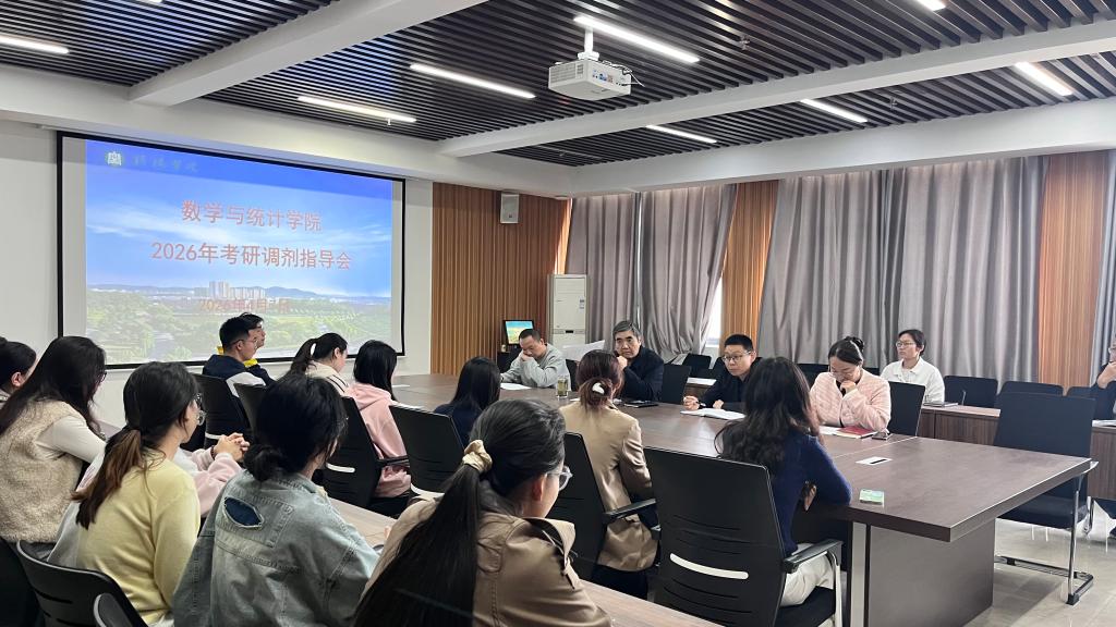 为切实帮助2026届考研学子把握调剂关键节点,破解调剂难题、精准规划升学路径,4月7日上午,数学与统计学院召开2026年考研调剂指导会,院长俞迎达、党总支书记郭二军、副院长张聪、党总支副书记田媛、全体辅导员及调剂学生参加会议。