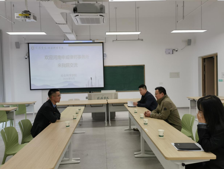 为推动法学教育与法律实务深度融合,构建校所协同育人新格局,4月10日,社会科学学院与河南信阳申威律师事务所在学院会议室举行合作交流会。学院党总支书记胡志国,法学专业教师郝斌、施蕊,毕业班辅导员阚青参加此次交流会。双方围绕实习实训平台建设、就业指导服务、实务教学创新及科研协同攻关等议题深入交流,凝聚共识、达成多项合作意向,为法学人才培养注入新动能。
