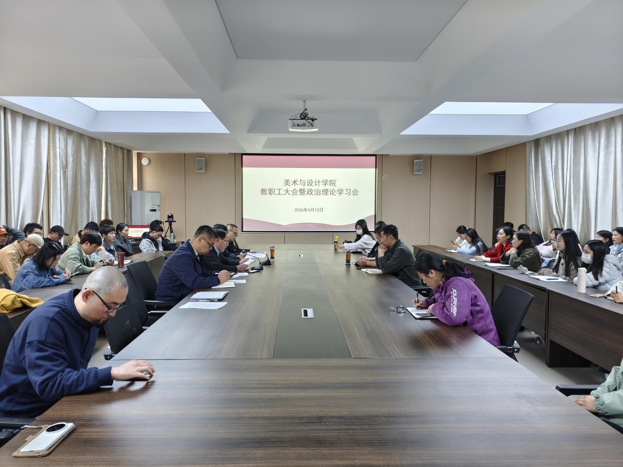 4月13日,美术与设计学院召开全体教职工大会暨政治理论学习会,党总支书记郑山峰、教学副院长王伟及全体无课教师参加了会议。