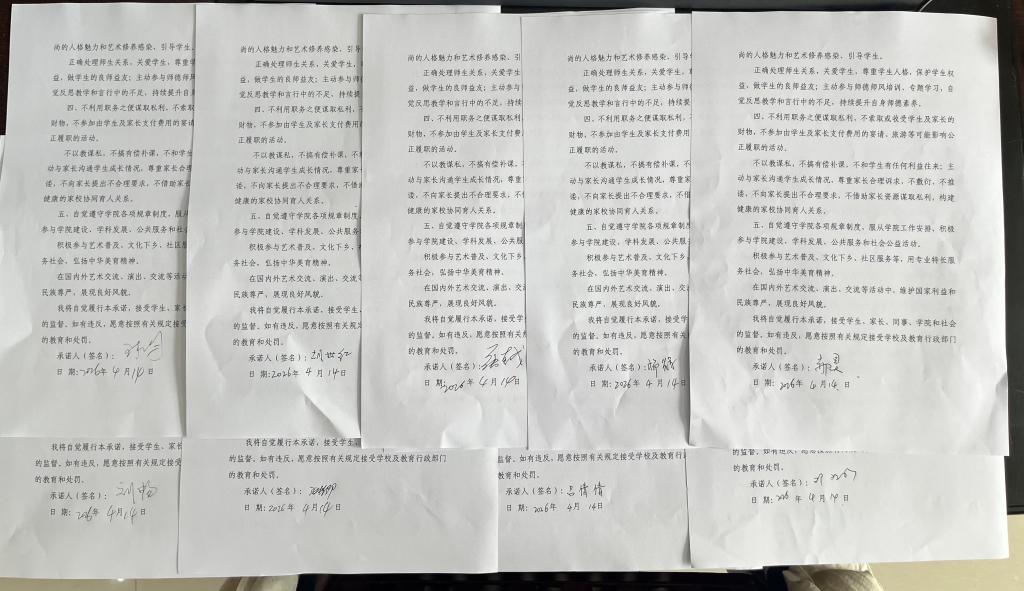 为进一步强化责任落实,固化学习成果,会上还组织全体教职工签署了《音乐学院师德师风个人承诺书》。承诺书明确了教职工在师德师风方面的具体责任与行为准则,既是对师德规范的再次重申,也是教职工对自身职业行为的庄严承诺。