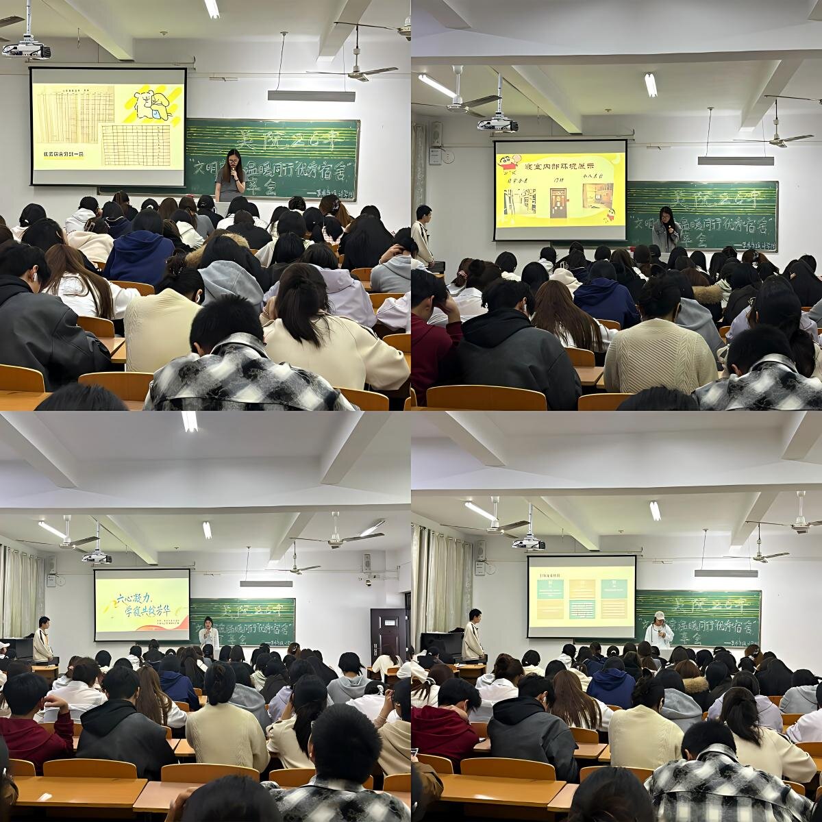 为深化宿舍文化建设,营造文明和谐的住宿环境,4月16日,美术与设计学院“文明宿舍,温暖同行”优秀宿舍分享会在艺术楼208教室顺利举办。