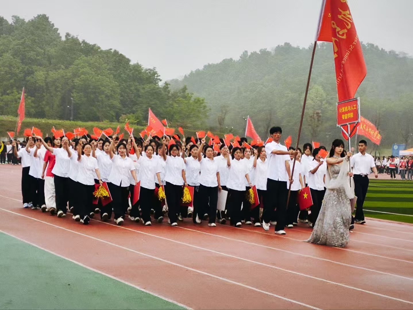除了赛场上的优异表现,计算机与人工智能学院在赛事组织、观众组织、后勤保障、宣传报道等方面也做得井井有条、有声有色。学院方阵步伐整齐、口号嘹亮;看台上,同学们组织有序,加油助威声此起彼伏,文明观赛;后勤保障点的志愿者们默默奉献,为运动员提供了周到的服务。