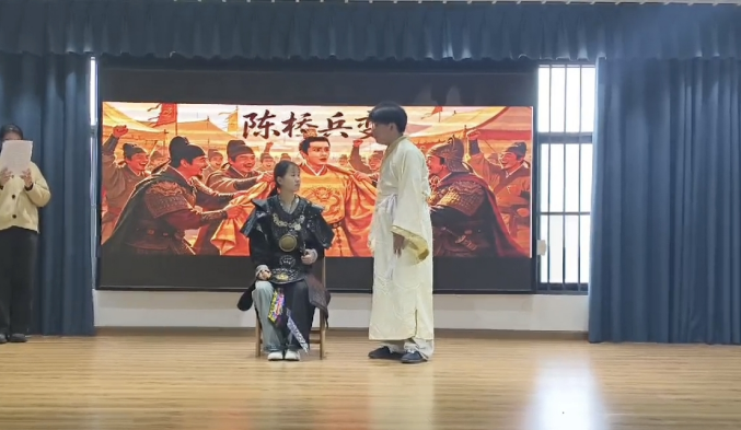 最后一出原创剧目《假如李世民是位面之子之改变扶苏的结局》,以历史假设与穿越创意为亮点,构思新颖、视角独特。剧情以李世民魂穿秦末、辅佐扶苏为主线,趣味还原沙丘之变的历史史实,在轻松诙谐的演绎中复盘秦代历史教训,启发学生辩证思考历史发展的偶然性与必然性,也激发了大家对历史“如果”的想象。
