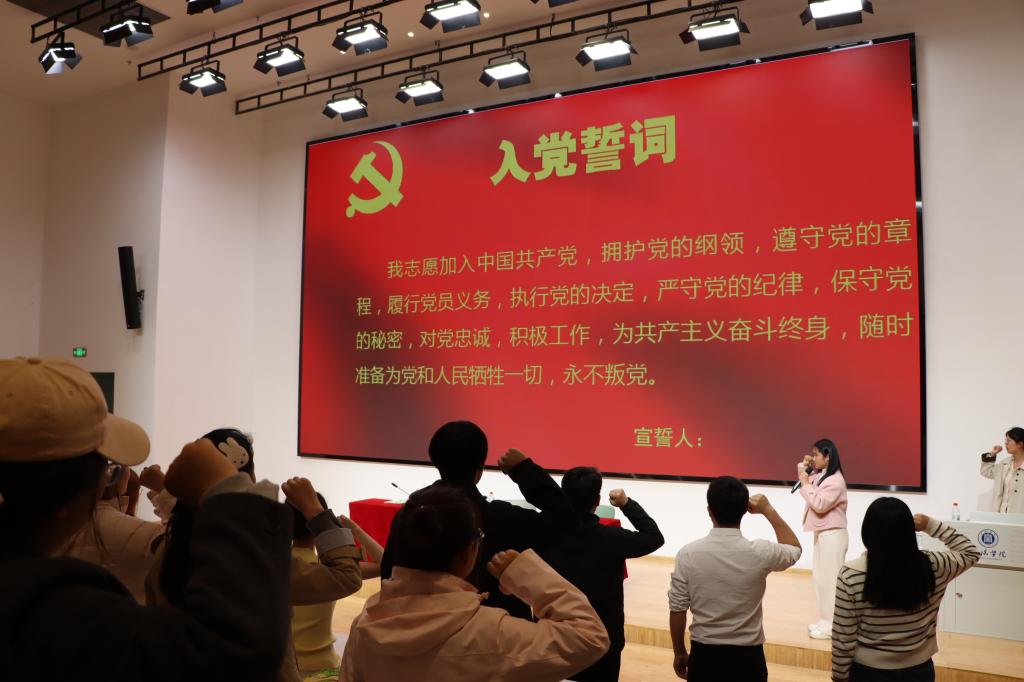李赟对学员们提出殷切期望:在本次培训中,同志们要认真参与,严格完成各项考核指标,要在专业学习中当标杆、做表率,作为文院学子,更要以文化自信筑牢精神根基。他指出,入党是一生的承诺,希望同志们把铮铮誓言内化于心、外化于行,在班级建设、志愿服务等实际工作中主动亮明中共党员身份,冲锋在前,用实干担当检验忠诚,真正做到从思想上入党,努力成为社会主义合格建设者和可靠接班人。最后,学生党员代表左依婷带领全体预备党员重温入党誓词,铿锵有力的誓言进一步强化了学员的身份意识与责任意识。