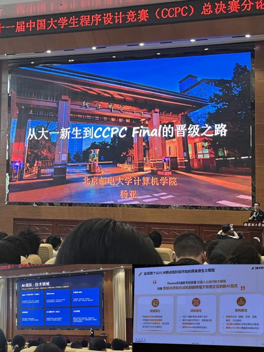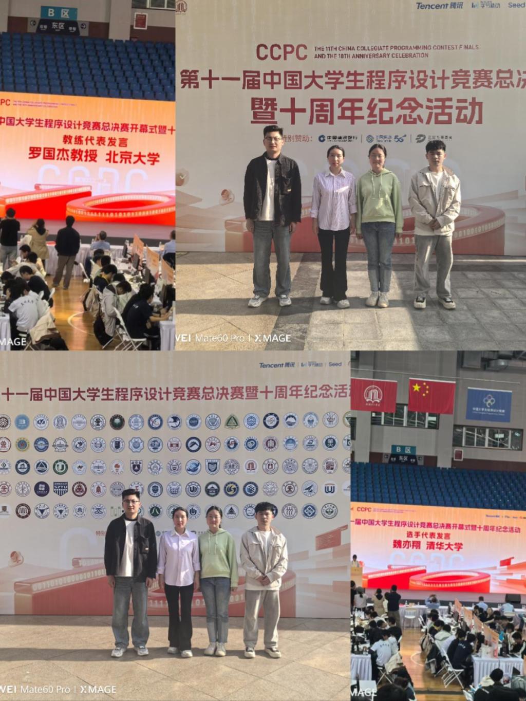 4月25日上午,计算机与人工智能学院一行前往南阳理工学院体育馆二楼,参加第十一届中国大学生程序设计竞赛总决赛开幕式暨十周年纪念活动。本次活动汇聚来自全国众多高校的优秀参赛队伍、程序设计领域知名专家学者与行业资深代表齐聚一堂,共同回顾中国大学生程序设计竞赛十年砥砺奋进的发展历程,见证十年来我国大学生程序设计人才培养的丰硕成果,现场交流以赛促学、以赛促教、以赛促创的竞赛育人经验,为我院进一步推进学科竞赛建设、提升学生创新实践能力提供了重要借鉴与方向指引。