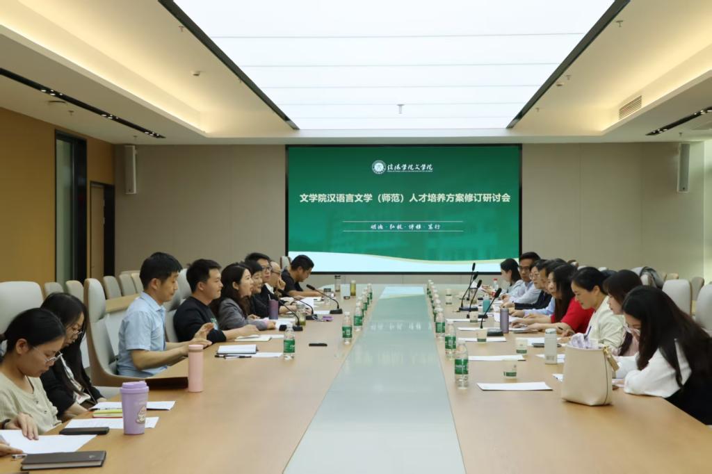 为紧密对接新时代基础教育发展需求,持续优化人才培养体系,提升汉语言文学师范专业育人质量,4月26日下午,文学院于教一楼406会议室召开汉语言文学师范专业2026版人才培养方案修订专题研讨会。会议特邀地方中小学一线高级教师、省级骨干教师、优秀校友等校外教育专家参会。文学院院长张凌江、党总支书记李赟、教学副院长杜泳林、特聘教授张振龙、教学秘书陈浩、行政秘书陈俊、学工秘书何军华、汉语言文学师范生认证专业负责人李峰亮、教研室主任及师范生实践教学教研室教师代表共同参与研讨。