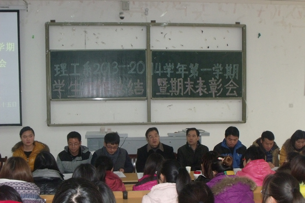 12月25日中午,理工系召开2013-2014学年第一学期学生工作总结暨表彰大会。系主任魏明坤、副主任管文水、党总支副书记兼学工秘书陈俊、教学干事高永平、团总支书记耿家先及全体辅导员参加此次大会。