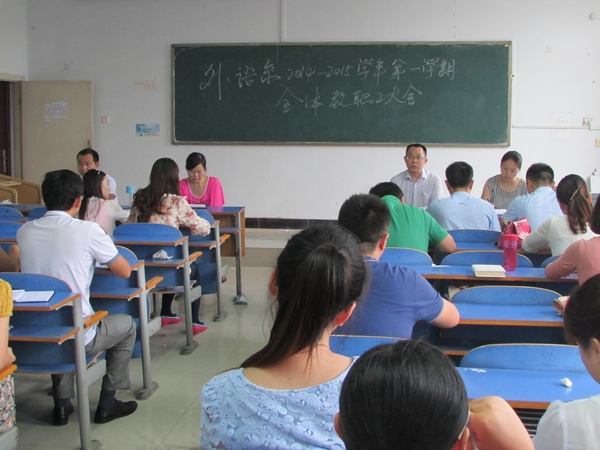 8月30日下午,外语系2014-2015学年第一学期全体教师会议在外语楼204教室召开。系主任罗德喜教授及该系全体教师参加了会议。
