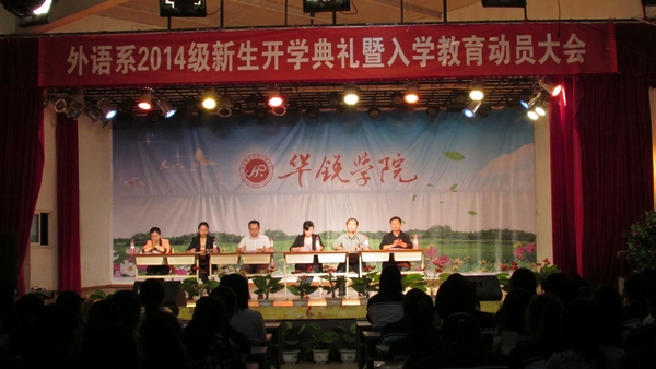 9月14日晚,外语系2014级新生开学典礼暨入学教育动员大会在大学生活动中心举行。该系主任罗德喜教授、各秘书、辅导员参加了此次大会。