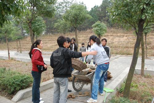 随后,青校学员以系为单位分别对此次实践活动进行了总结。理工系和数计系几名大四的学员们不约而同地表示,即使是在备考研究生考试的紧张阶段,一旦投入到这样的劳动实践中,便感觉很光荣,特别是看到垃圾被自己和同伴们一车车地推走,倍感自豪。外语系一名青校学员说:“作为一名青校学员,我们要时刻为同学们服务,美化校园环境,营造良好的学习、生活环境是我们应尽的义务”。 大家纷纷表示,要从我做起,爱护校园,保护环境,拒绝乱扔垃圾,养成“人人齐参与,人人多奉献”的良好习惯,为校园精神文明建设贡献自己的力量”。