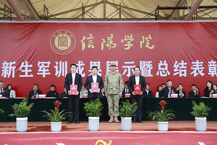9月30日上午,我校2025级新生军训成果展示暨总结表彰大会在浉河校区东区体育场举行。全体校领导、承训部队首长出席大会。各学院院长、书记,各部门负责人以及2025级全体新生共同参加了大会。副校长王强主持会议。