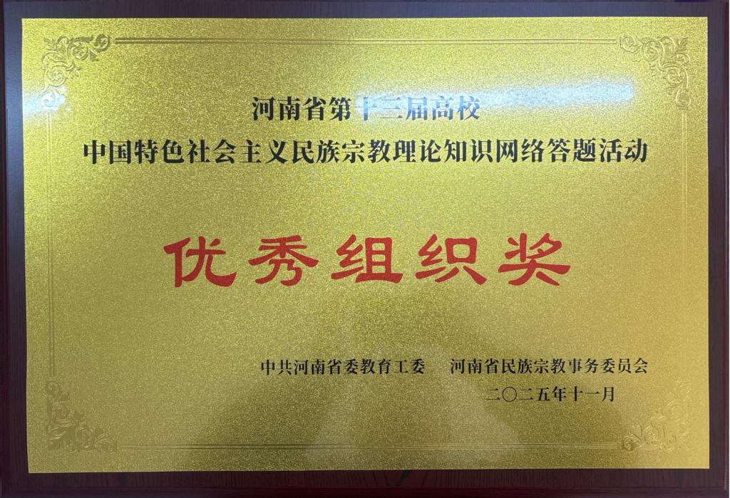近日,河南省民族宗教委办公室、河南省教育厅办公室、河南省体育局办公室下发《关于公布豫来豫亲——铸牢中华民族共同体意识主题教育实践活动结果的通知》(豫民宗办〔2025〕41号),我校在高校中国特色社会主义民族宗教理论知识网络答题、铸牢中华民族共同体意识主题征文比赛等活动中荣获多个奖项。