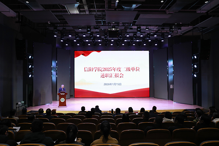 为全面复盘2025年工作成效,分析存在问题,谋划2026年发展蓝图,近日,信阳学院召开2025年度二级单位述职报告会议。全体在校校领导出席会议。各学院院长、书记、副院长,各职能部门负责人参加会议。