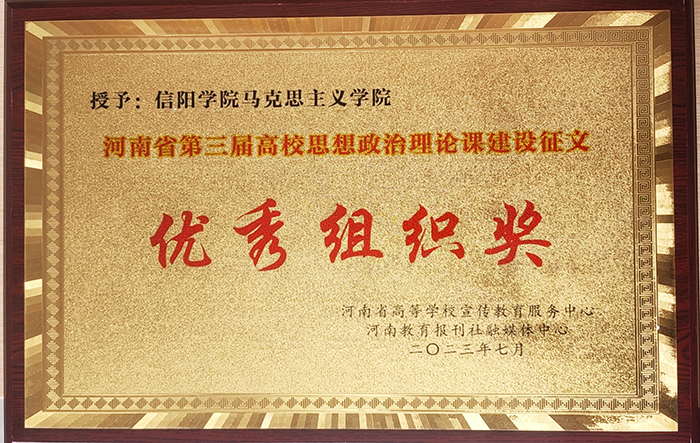 近日,河南教育宣传网、河南省高校思政课建设宣传中心发布《关于公布河南省第三届高校思想政治理论课建设征文获奖名单的通知》,我校马克思主义学院教师参赛论文荣获一等奖2项、二等奖6项、三等奖4项,获奖等次和获奖数量均居全省高校前列。信阳学院马克思主义学院荣获“优秀组织奖”。