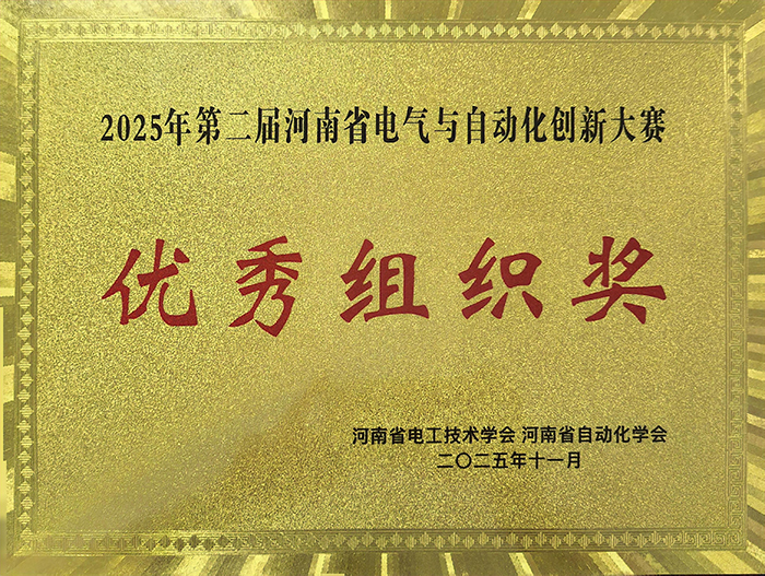 近日,由河南省高等教育学会指导,河南省电工技术学会、河南省自动化学会、河南省高校电气类专业教学指导委员会、河南省高校自动化类专业教学指导委员会联合主办的“2025年第二届河南省电气与自动化创新大赛”在郑州铁路职业技术学院成功举办。我校理工学院两支代表队在此次大赛中凭借扎实的专业功底和卓越的创新能力取得了优异成绩。机械电子工程专业学生王乃雁、胡苏阳(指导教师:王雪梅、连加巍)荣获本科组一等奖;孙锆鑫、邓明源(指导教师:周梦、闰文彬)荣获本科组三等奖。同时,信阳学院荣获大赛“优秀组织奖”。
